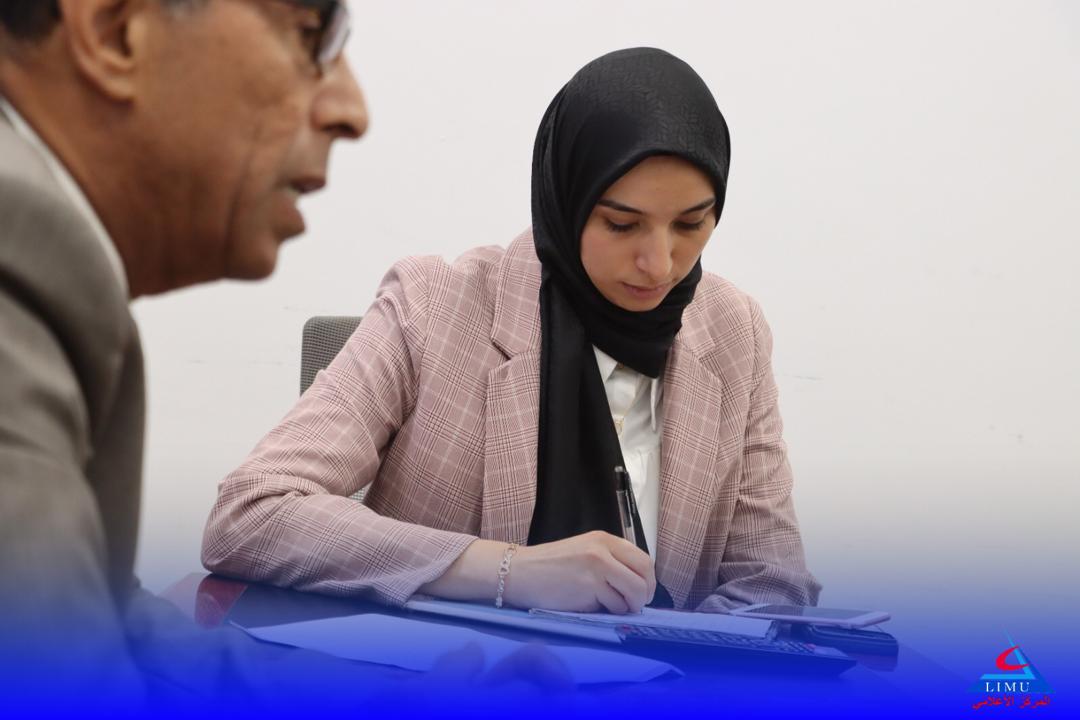 Today, Wednesday, the seventeenth of April 2024, the first meeting of the Scientific Day preparation committee was held in the Academic Hall, in the presence of Mr. Abdullah Al-Mansouri, the Dean of the Faculty of Applied Medical Sciences. The purpose of the meeting was to organize and prepare for the Scientific Day activities. The attendees focused on discussing the following items: